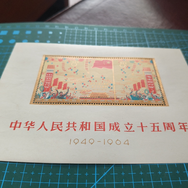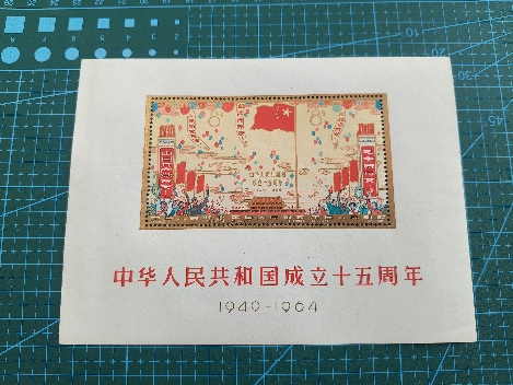 纪106建国十五周年小全张。原胶胶润亮,有软折等瑕疵,金粉尚亮。7500元出售。