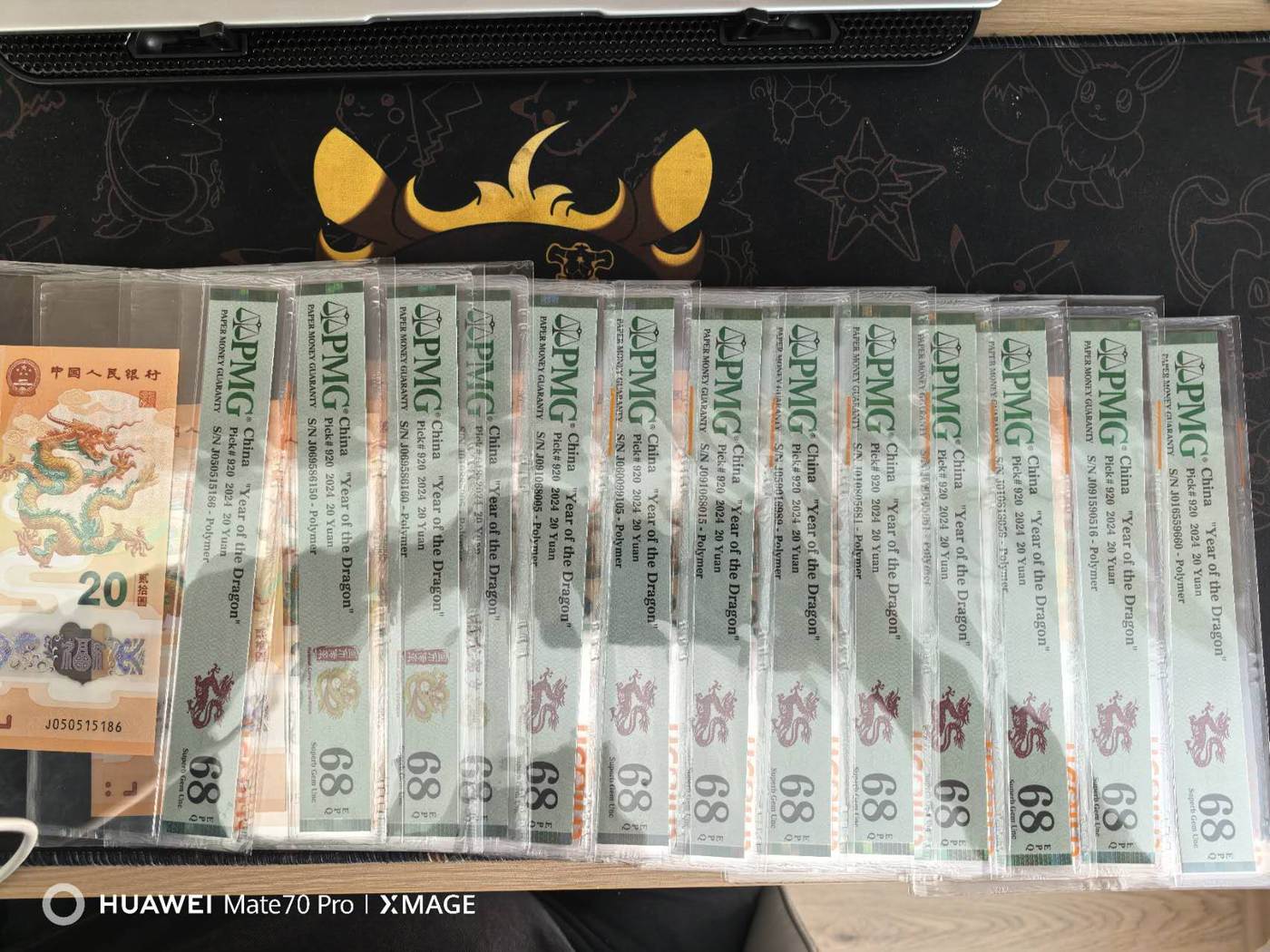 第二,960出龙钞朦胧满号pmg68分,共15张,通走
