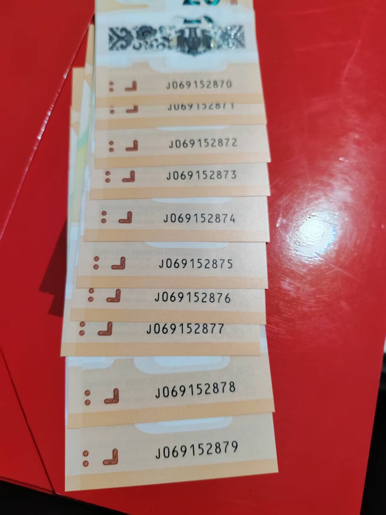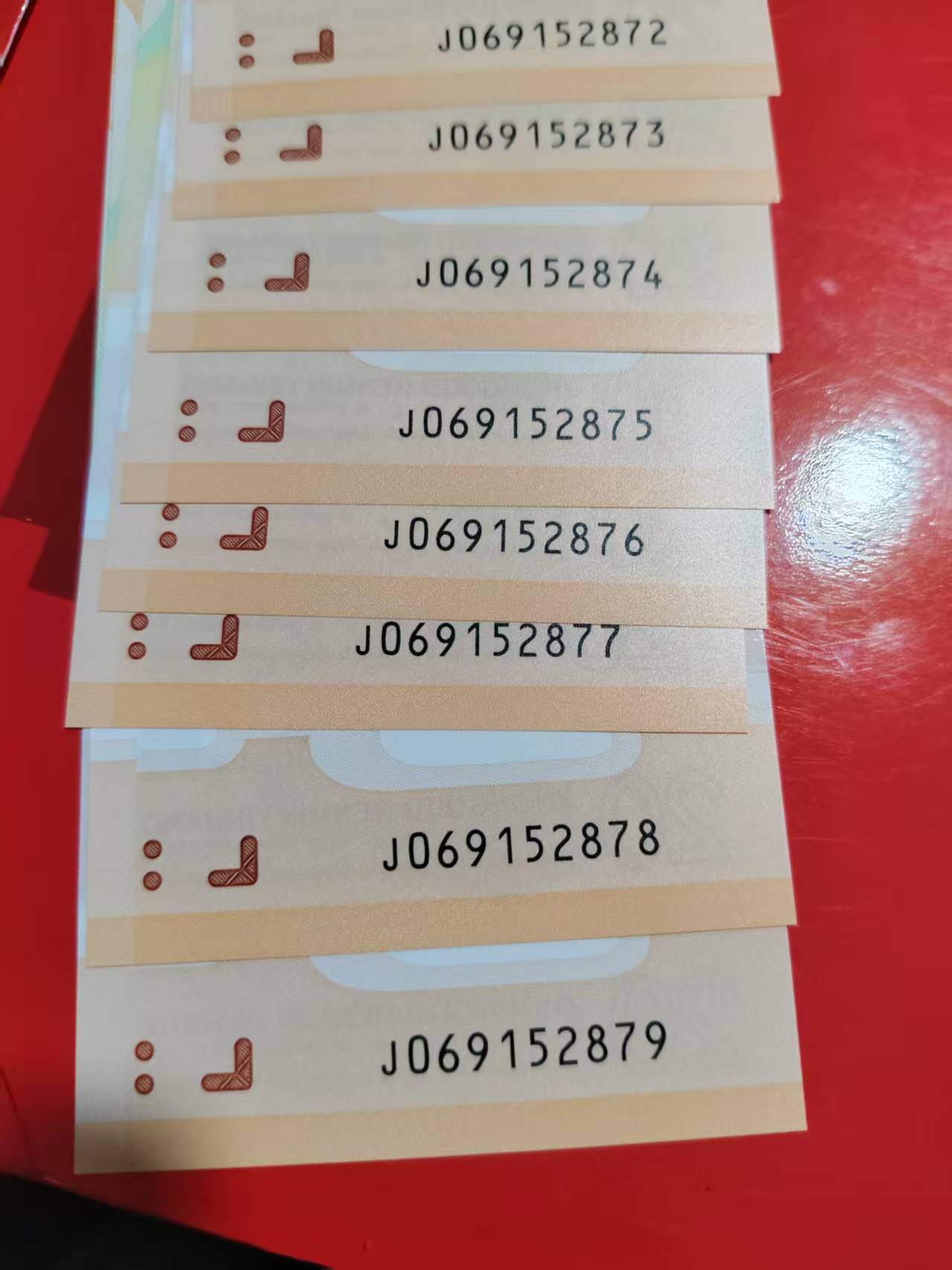 龙钞无34的一个10连号,10连号,有069两张乱蛇。1500元。