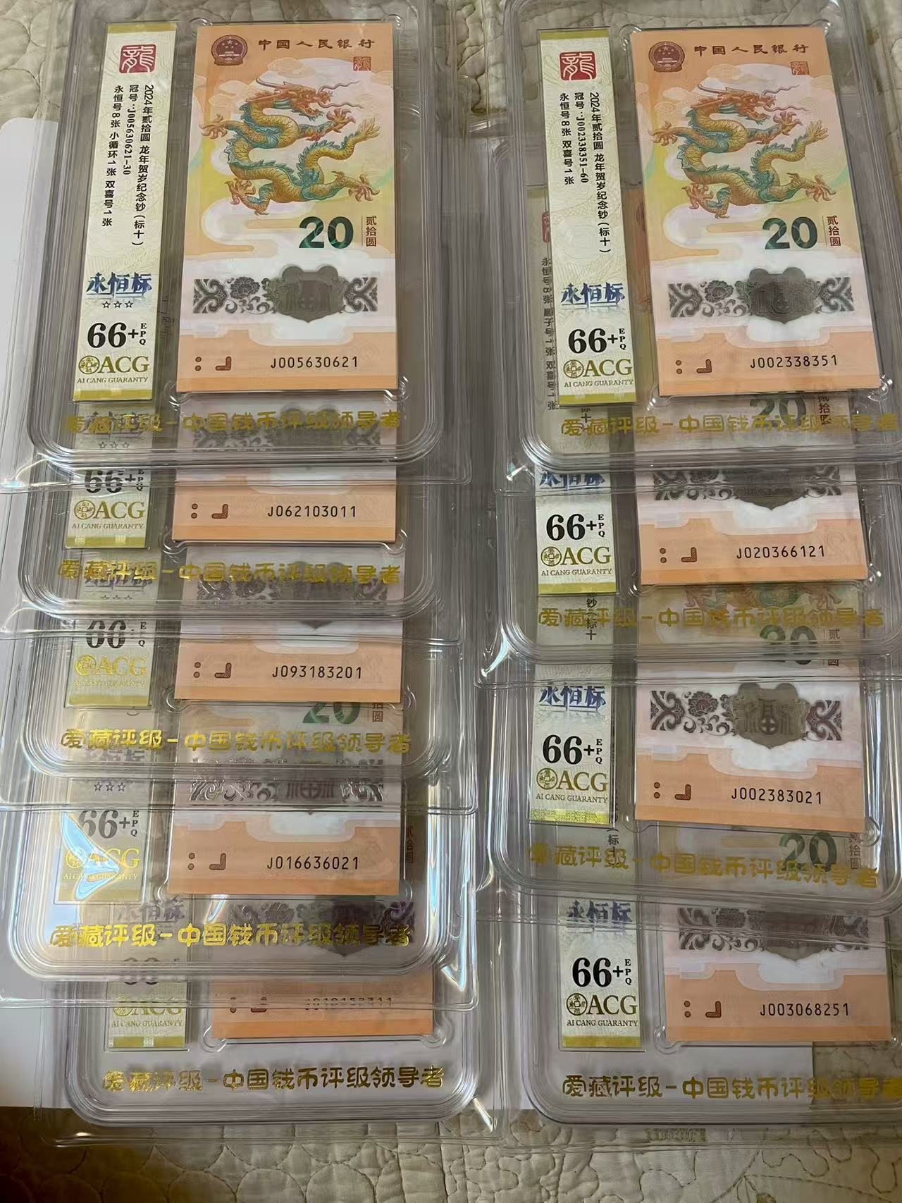 出龙钞标十19组。爱藏评级66加,三星纯正8张的,银行原票未修送评,1580一组通走。新帖开 旧帖撤