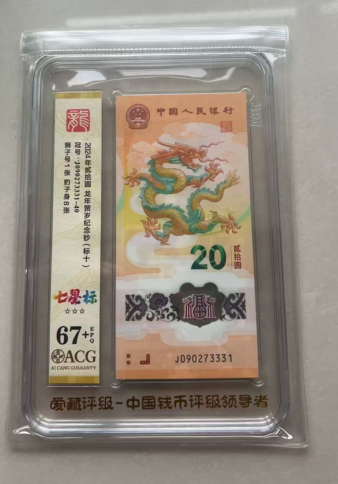 → 2024年龙钞标十无4标十狮子号3333,爱藏评级67+分,(2300)包邮顺丰
