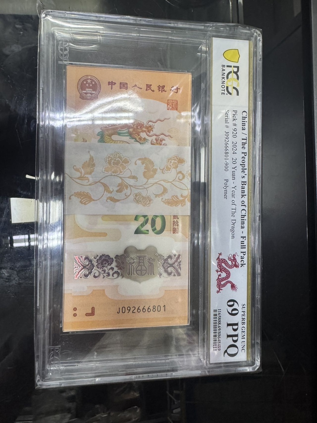 评级龙钞整刀百联pcgs69 J092666801 朦胧双豹子 价格 27.8万元