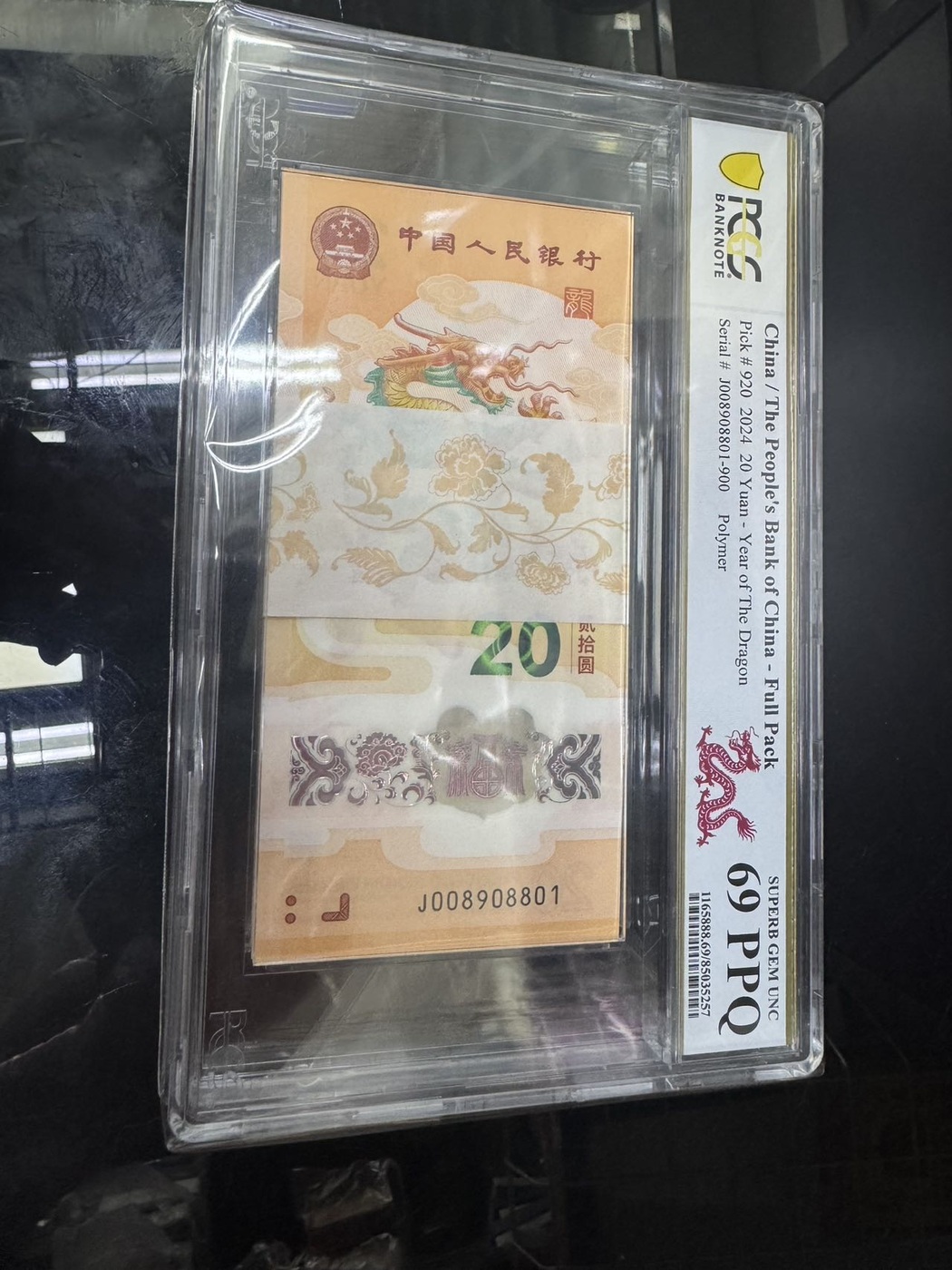 评级龙钞整刀百联pcgs69 J008908801 圆圆089号 价格68.8万
