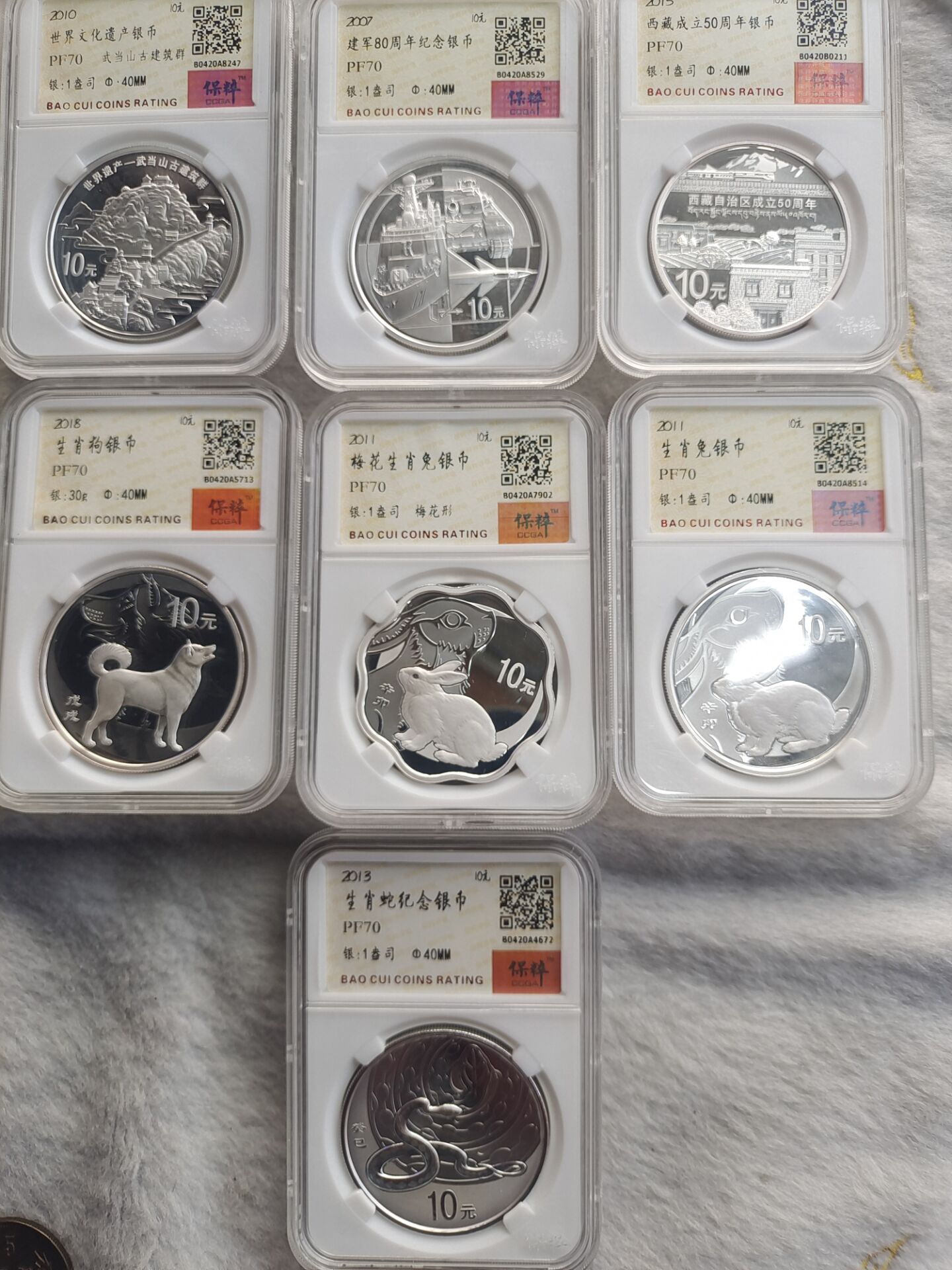 11兔1枚.18狗1枚.建军1.武当山1.西藏50。6枚一起3100元