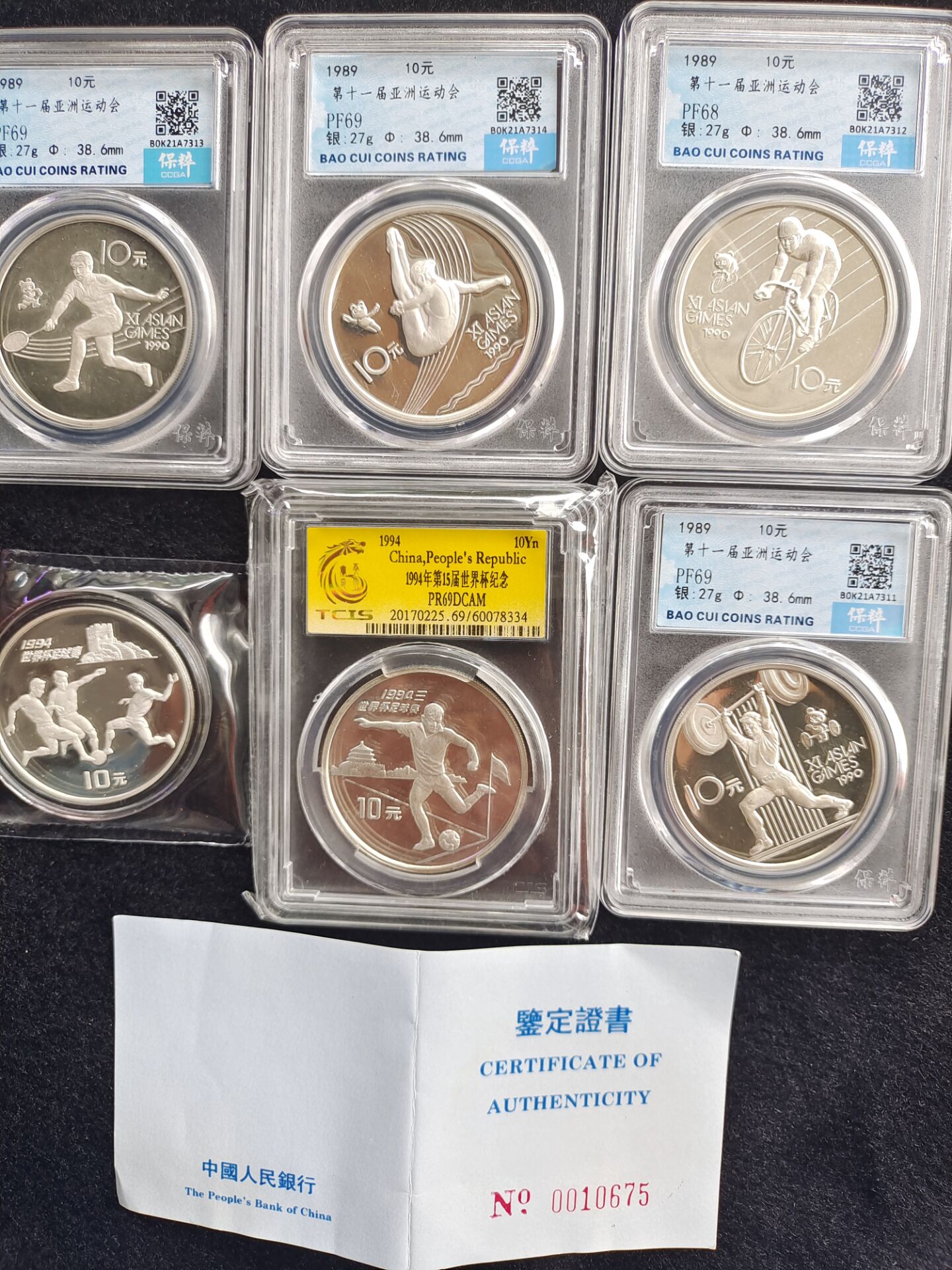 早期体育5枚评级。一枚原封带证书94足球已出。5枚评级盒一起2100元