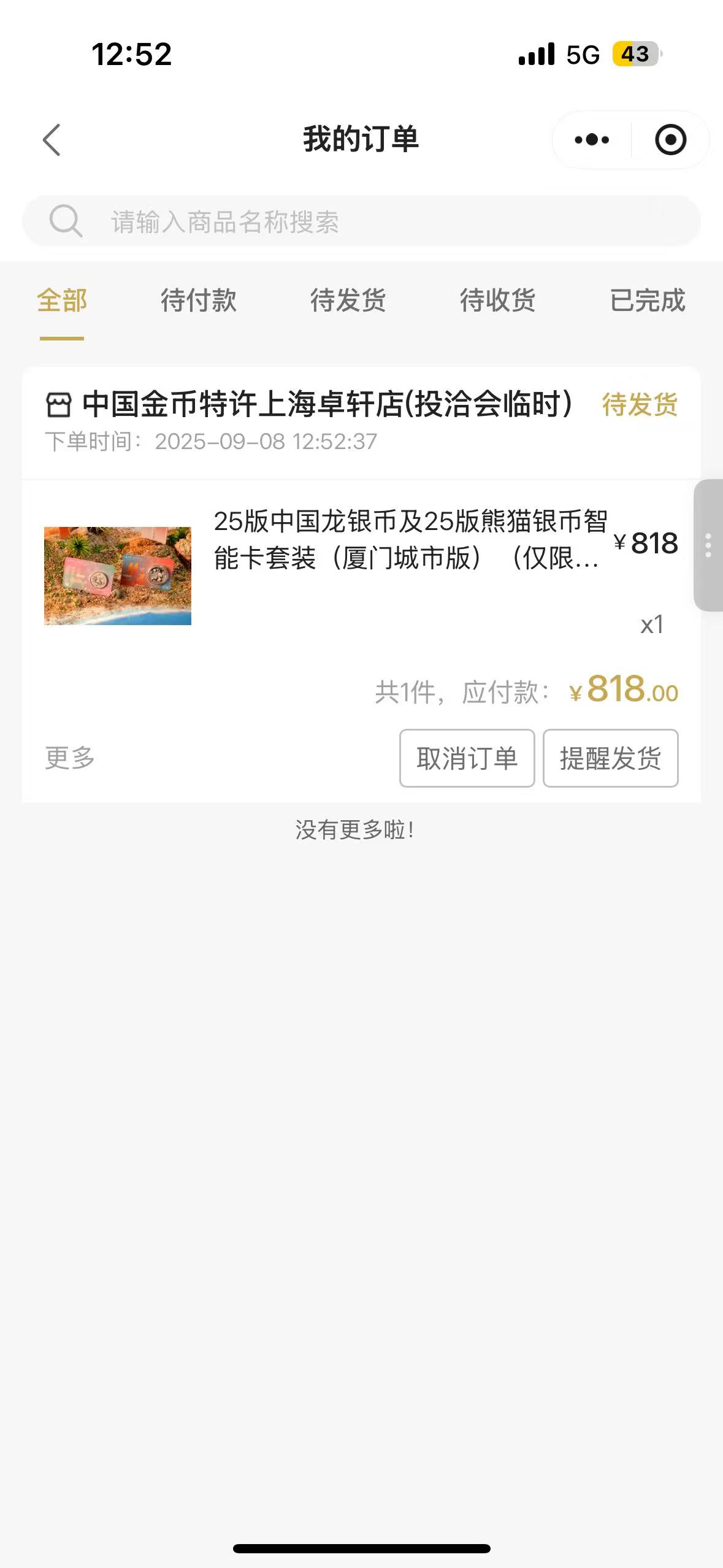 60枚原本为在厦门98投洽会金总展点线下提货的也更改为线上下单后在进行配送