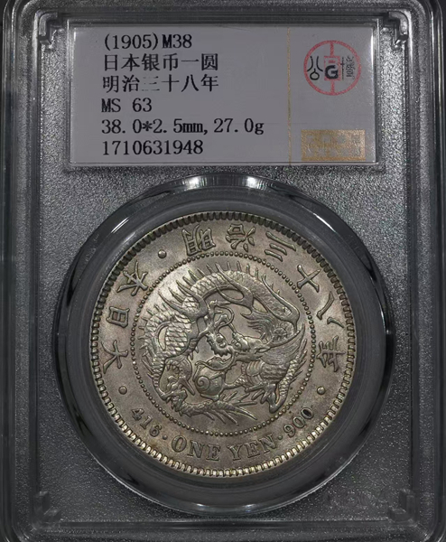 → 日本银币壹圆明治三十八年(公博MS63)