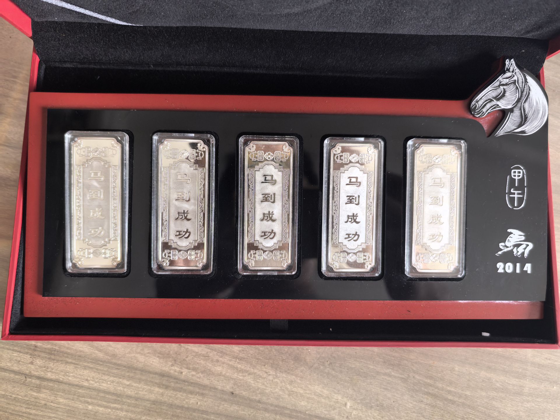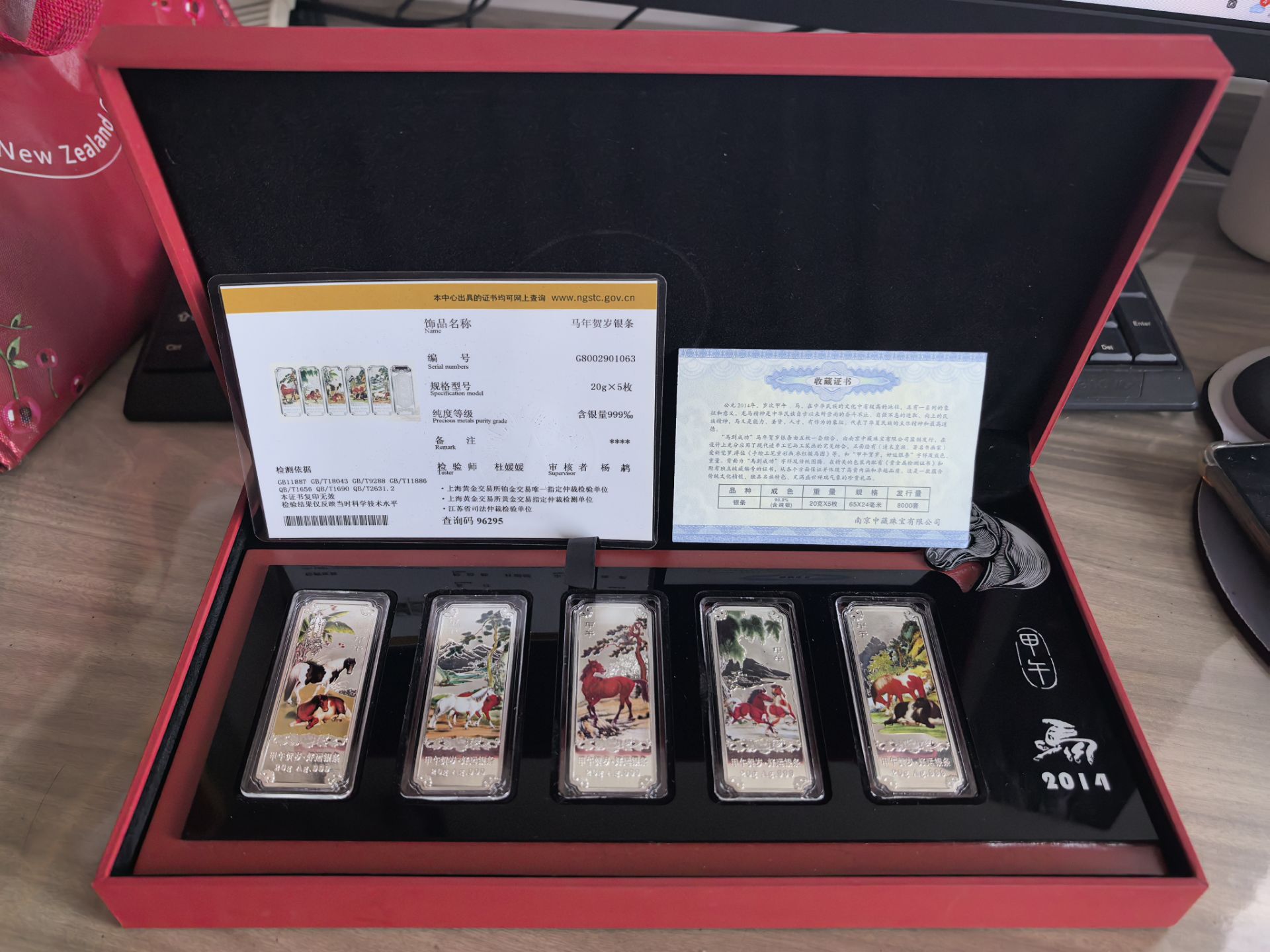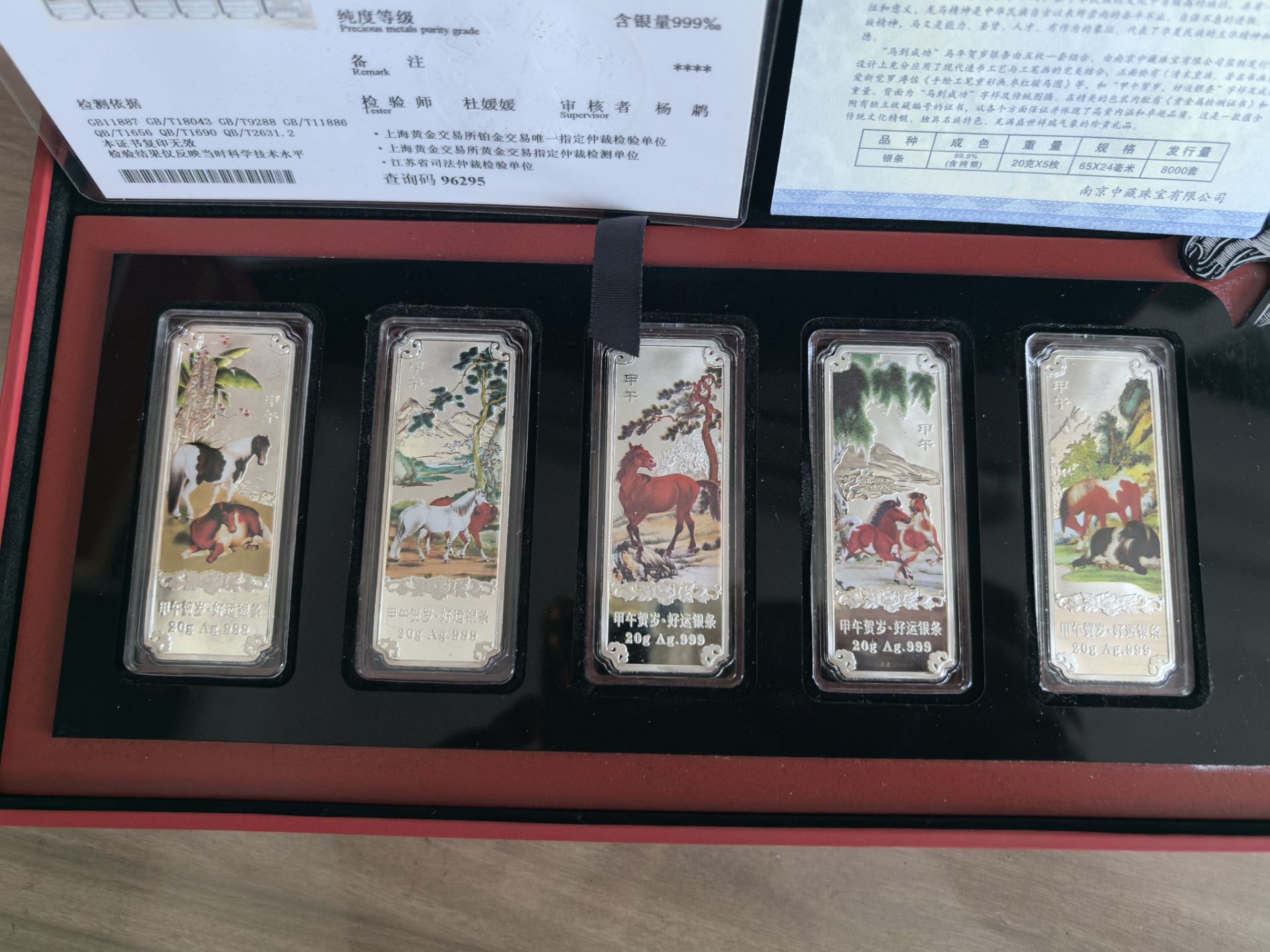 品见图片实物拍,银条100克 马年银条,1盒5个,每个20克,5个20克银条,1050元包真包快。
