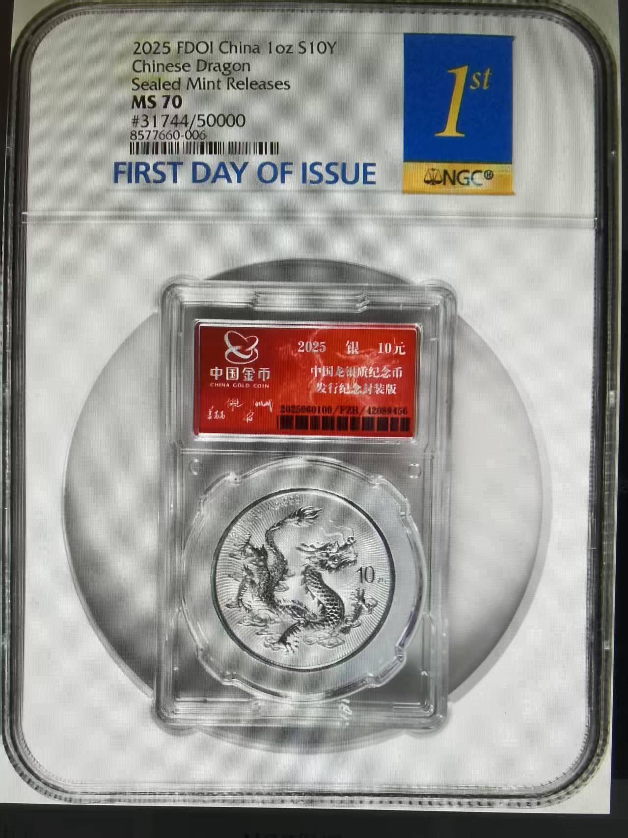 投资资讯网交易在线钱币大卖场现代金银贵金属币 → 售2025年中国龙封装NGC评级70分首日金兰标一枚
