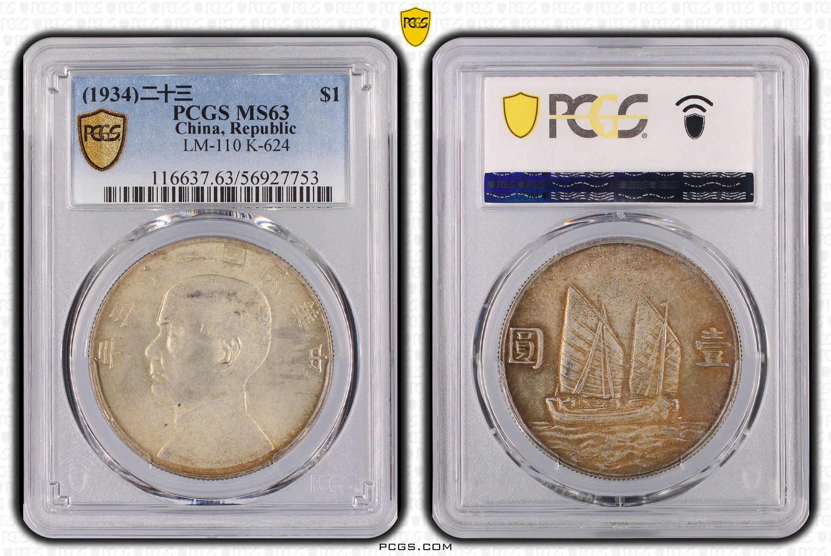 → PCGS.MS63二十三年五彩船洋