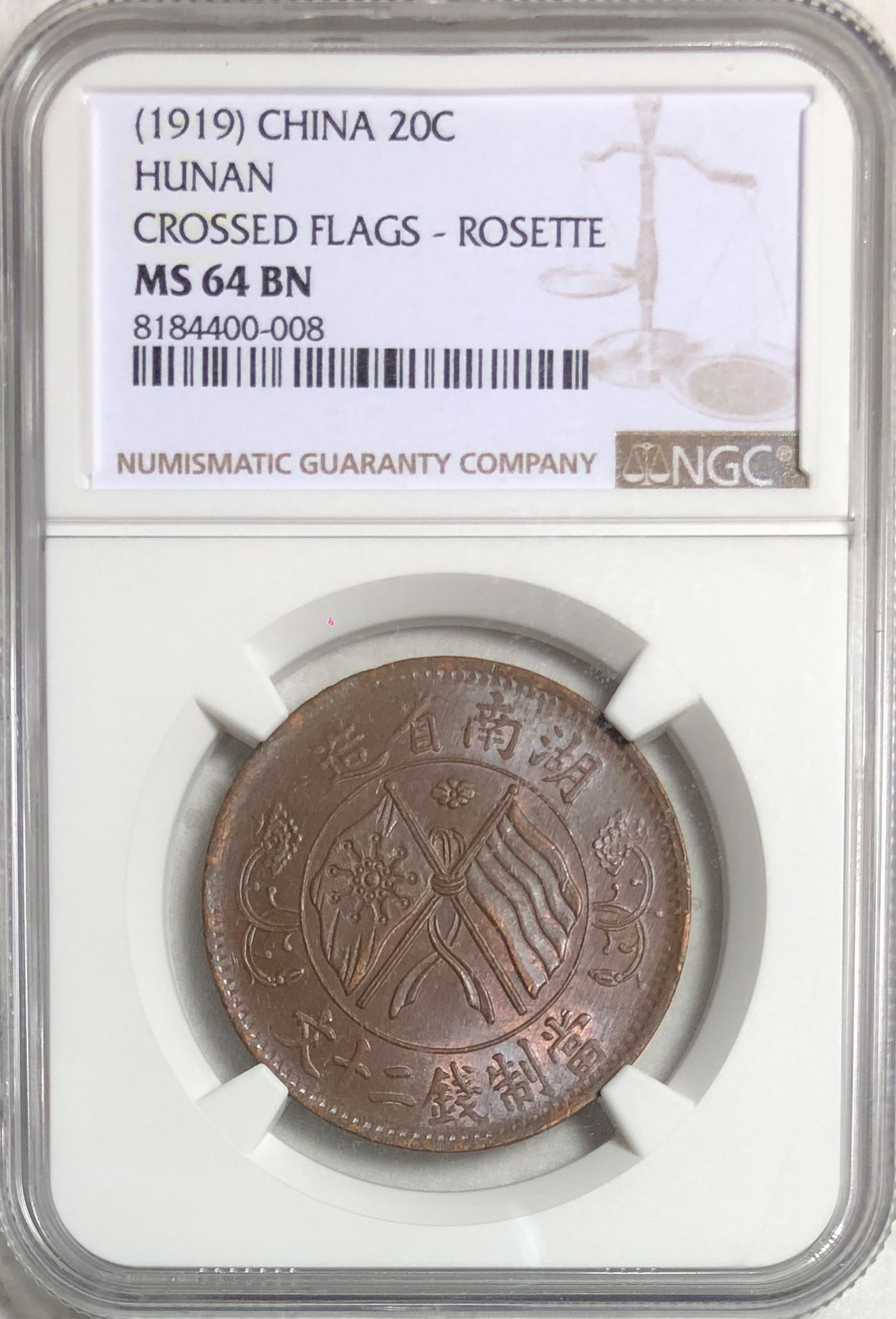 → 冠军分!仅23枚 NGC MS64湖南双旗二十文