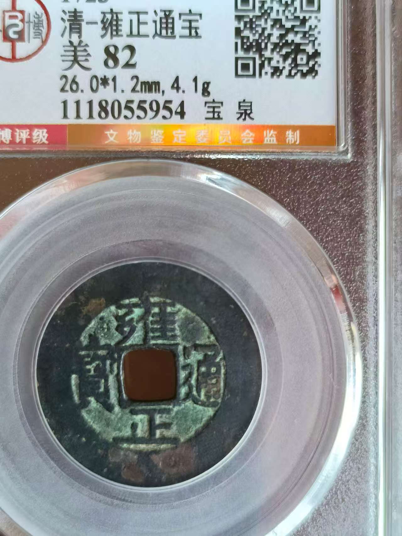 雍正罗汉式尺寸:26.0*1.2 4.1克 雍正宝泉82分