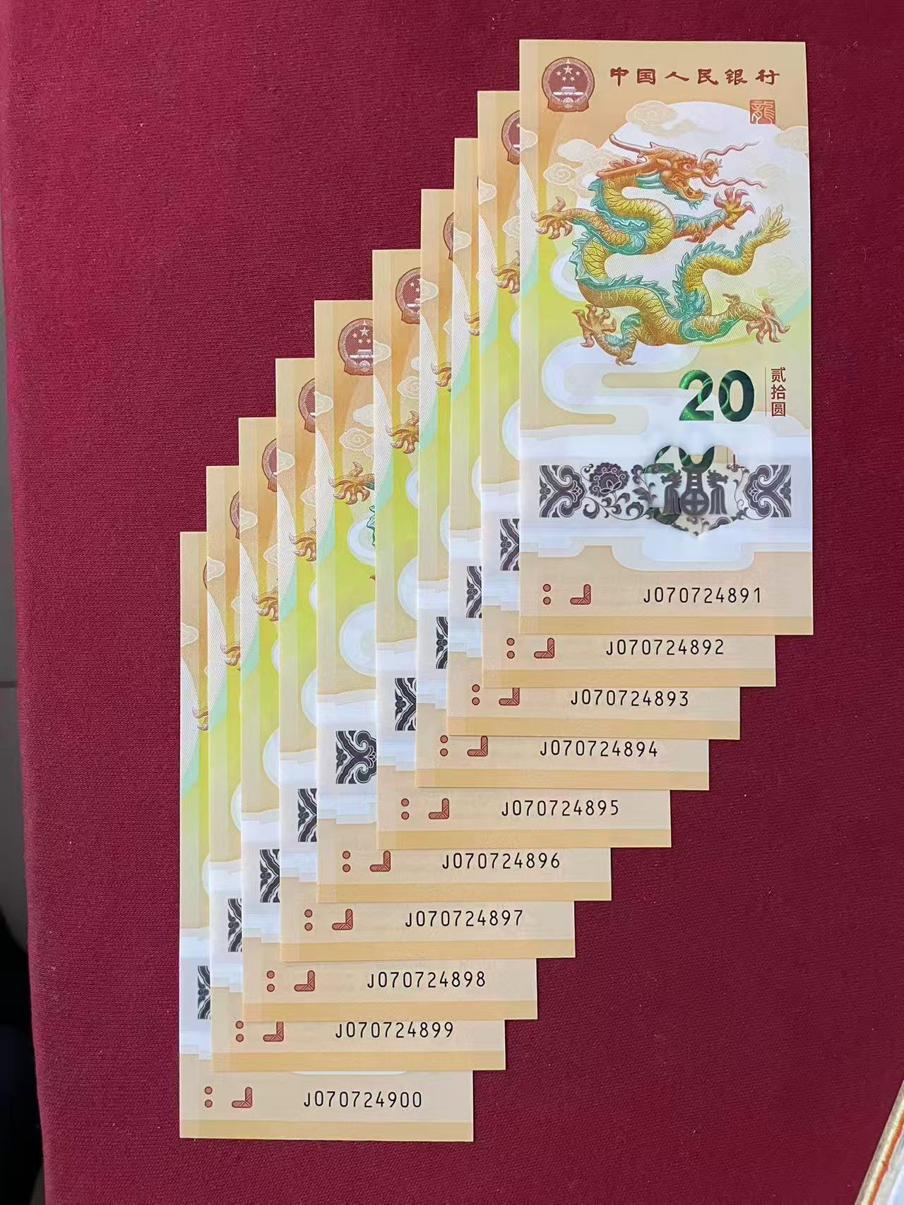 小龙钞标十1组 除了一处有一个轻微指甲印,其余无毛病,910元非偏远包邮