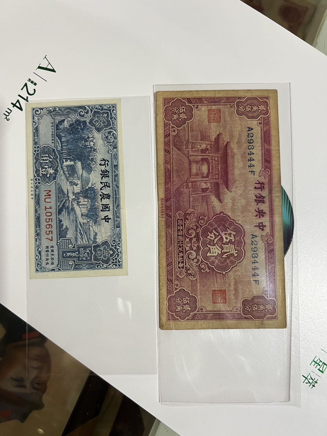 → 中国农民银行壹角中央银行二角伍分
