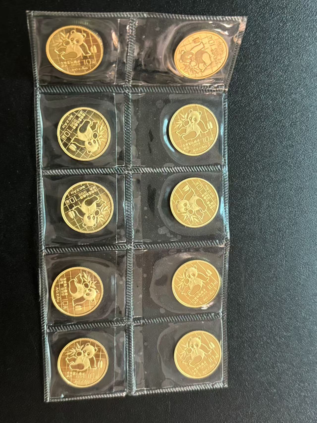 → 1989年金猫 1/10盎司熊猫金币 原封整板