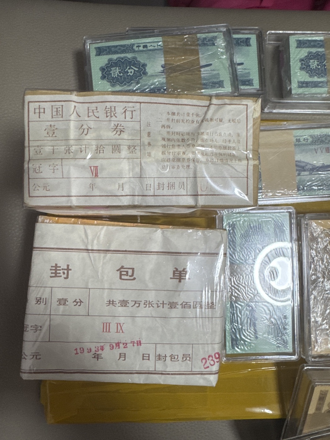 有两捆看图!1050×2无油无斑!125每刀出6刀2分无油无斑其中有三刀荧光的,有一刀带封签,数额不多一起走吧1050×2=2100+125×6=2850