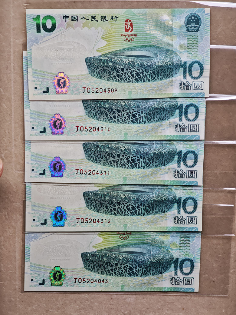 08年奥运钞 5张