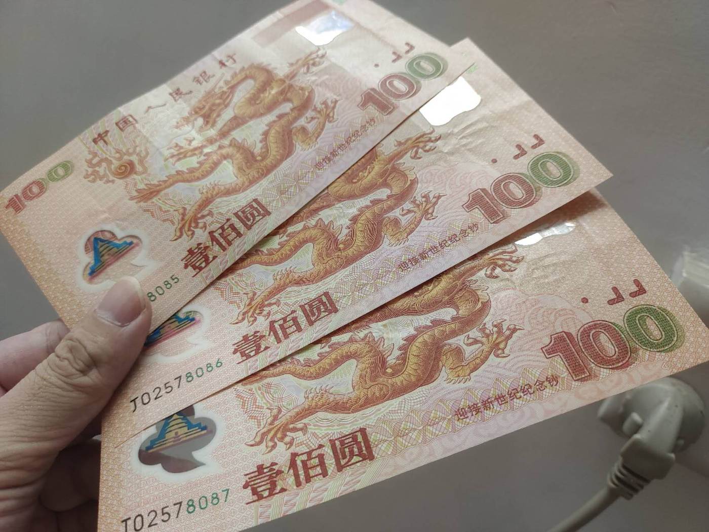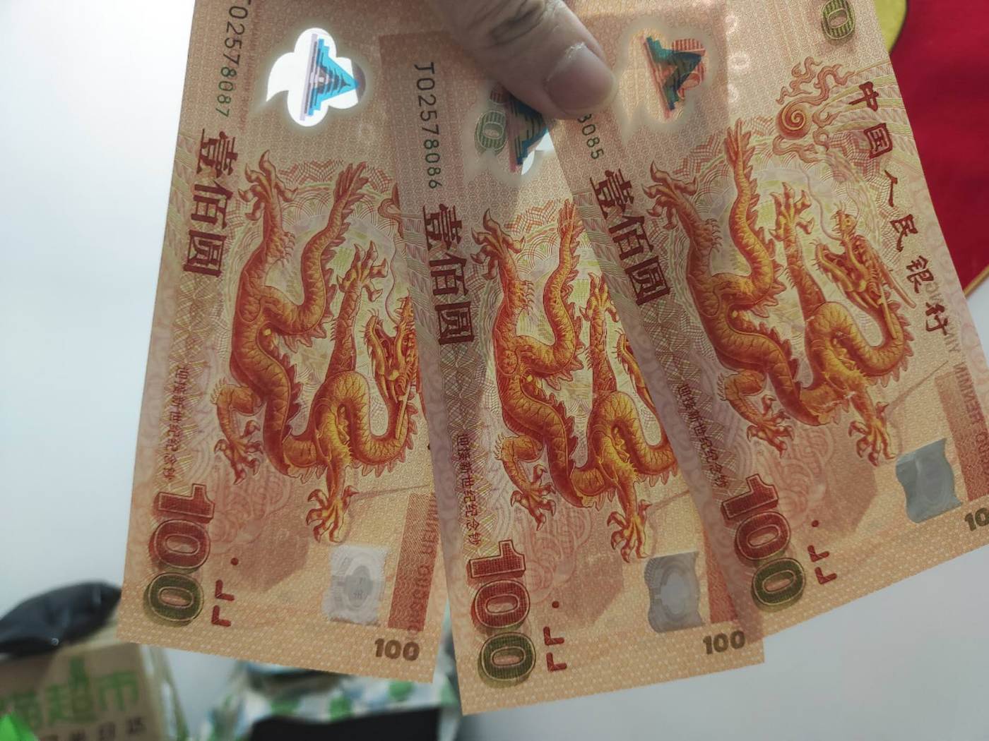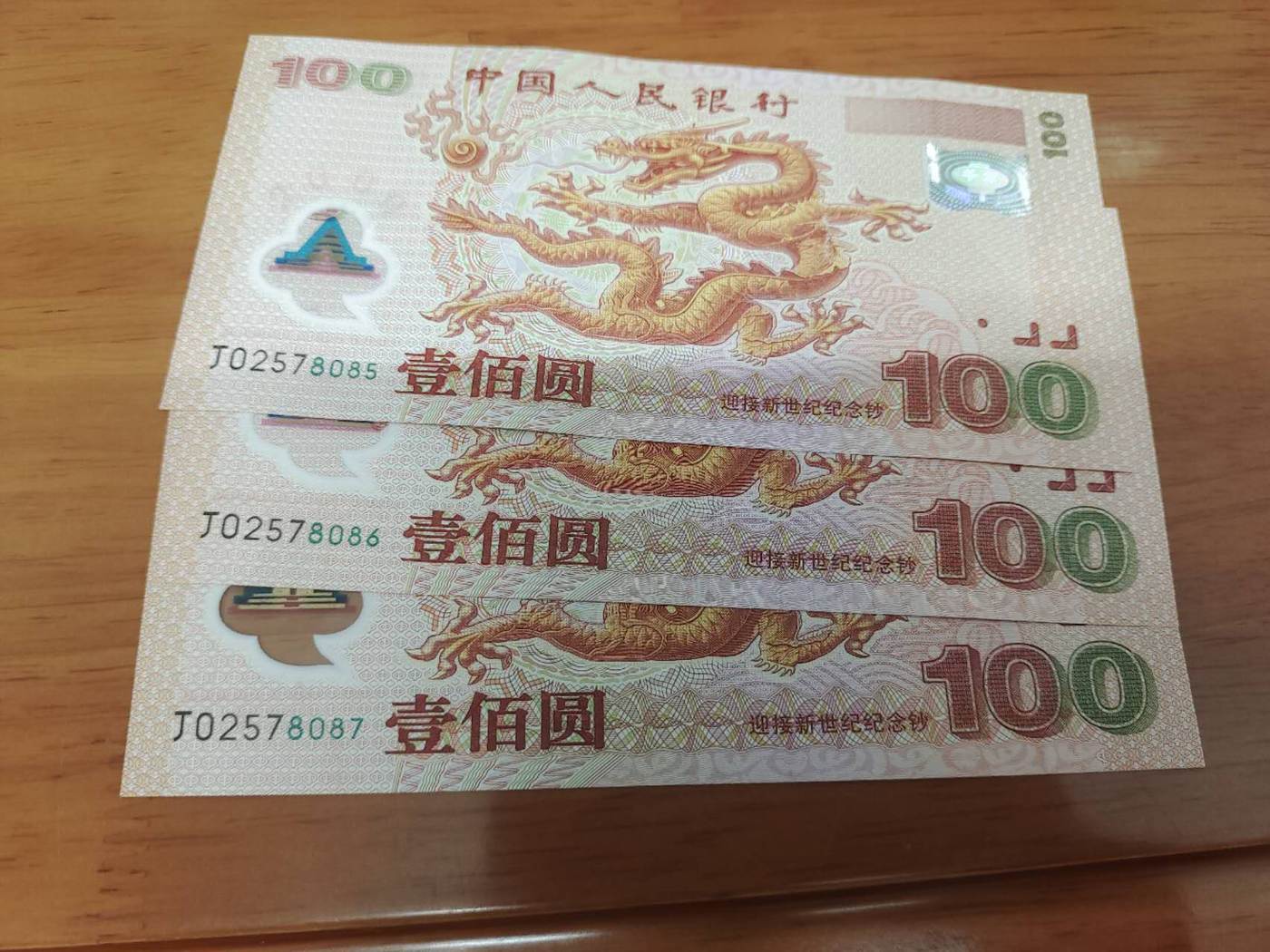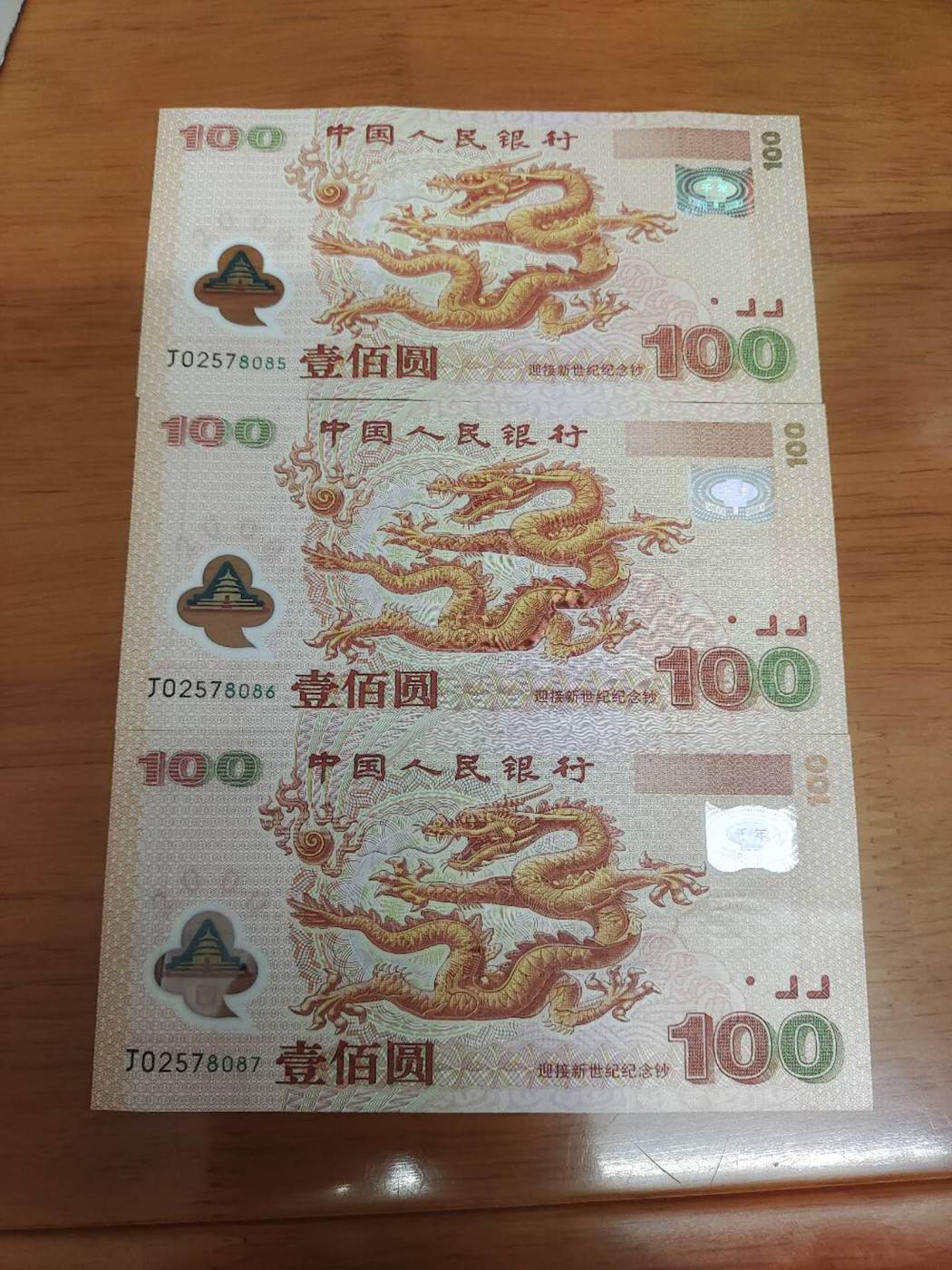 大龙三连号有折,背面折痕处轻微磨损,900×3=2700包邮