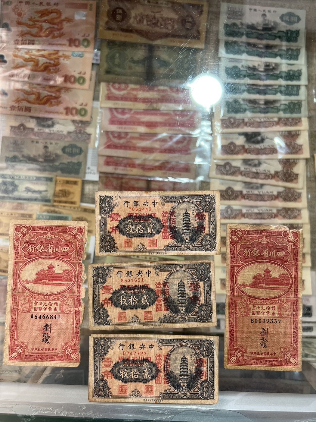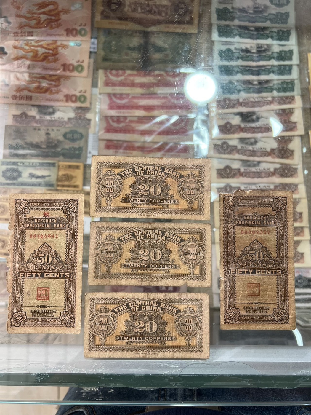 3张民国17年中央银行1928年贰拾枚改壹角二十枚改一角 ,2张四川银行伍角,原票一起588元