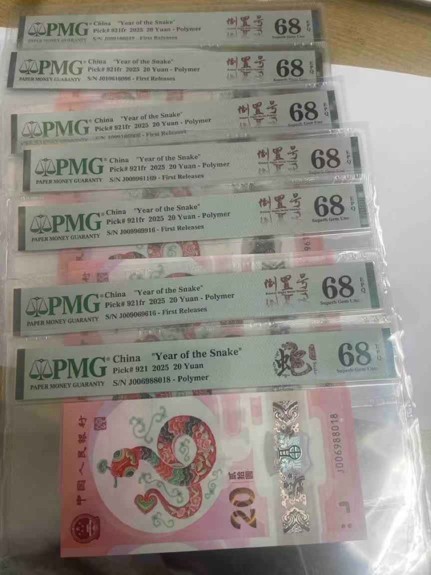 出7张68分蛇钞倒置号,550元/张,其中有一张尾8的