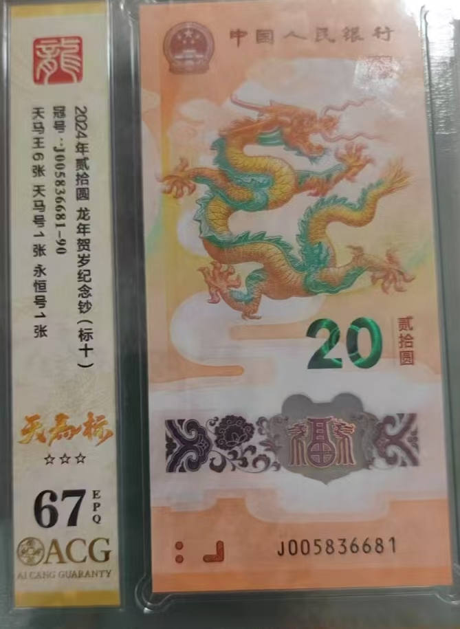 → 低价出一组天马标爱藏评级67分小龙钞标十