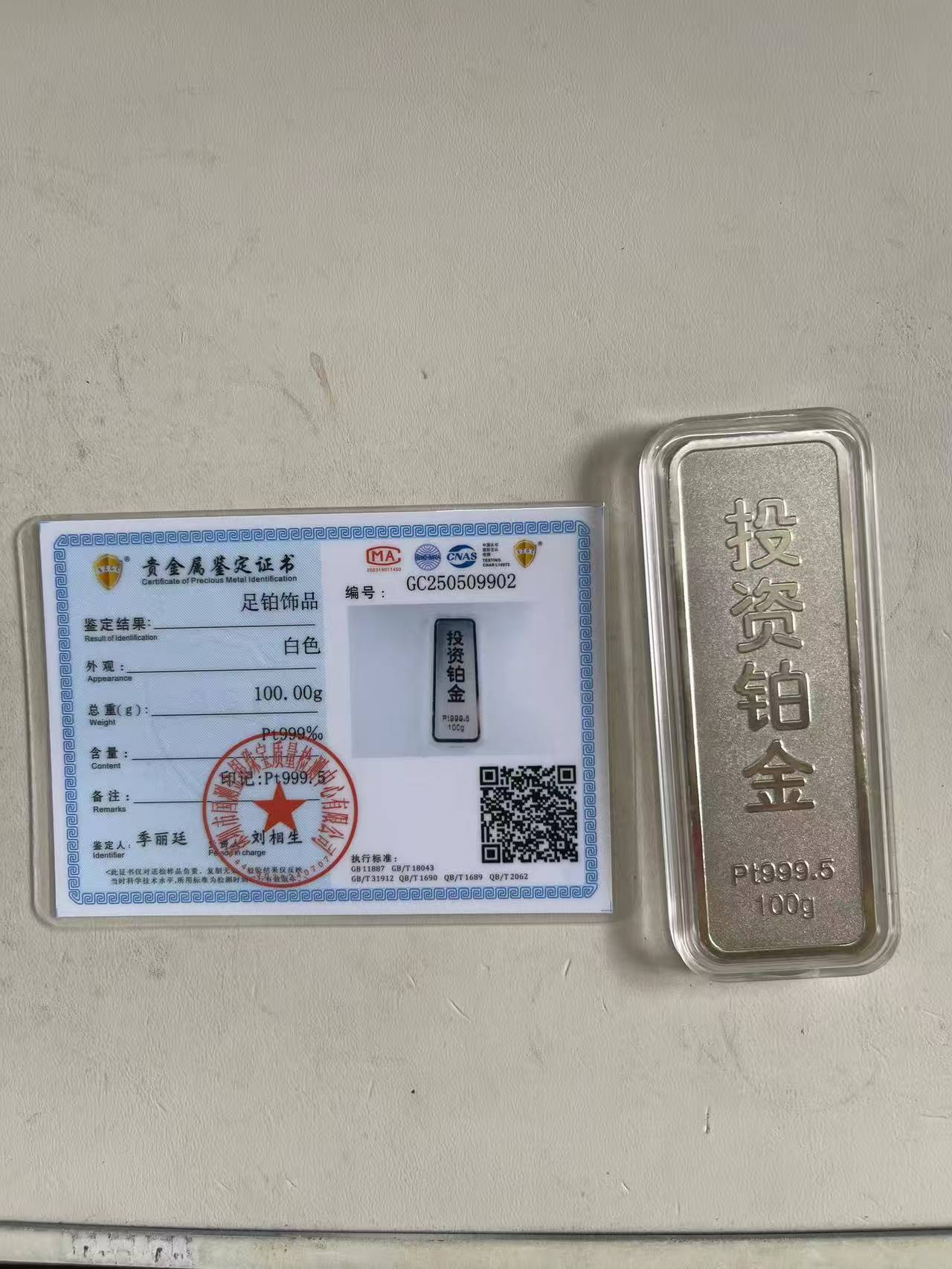 出售100克铂金金条,目前34500元出售,包顺丰,喜欢的老板电话联系确认,因为金价波动大,双方电联确认为准