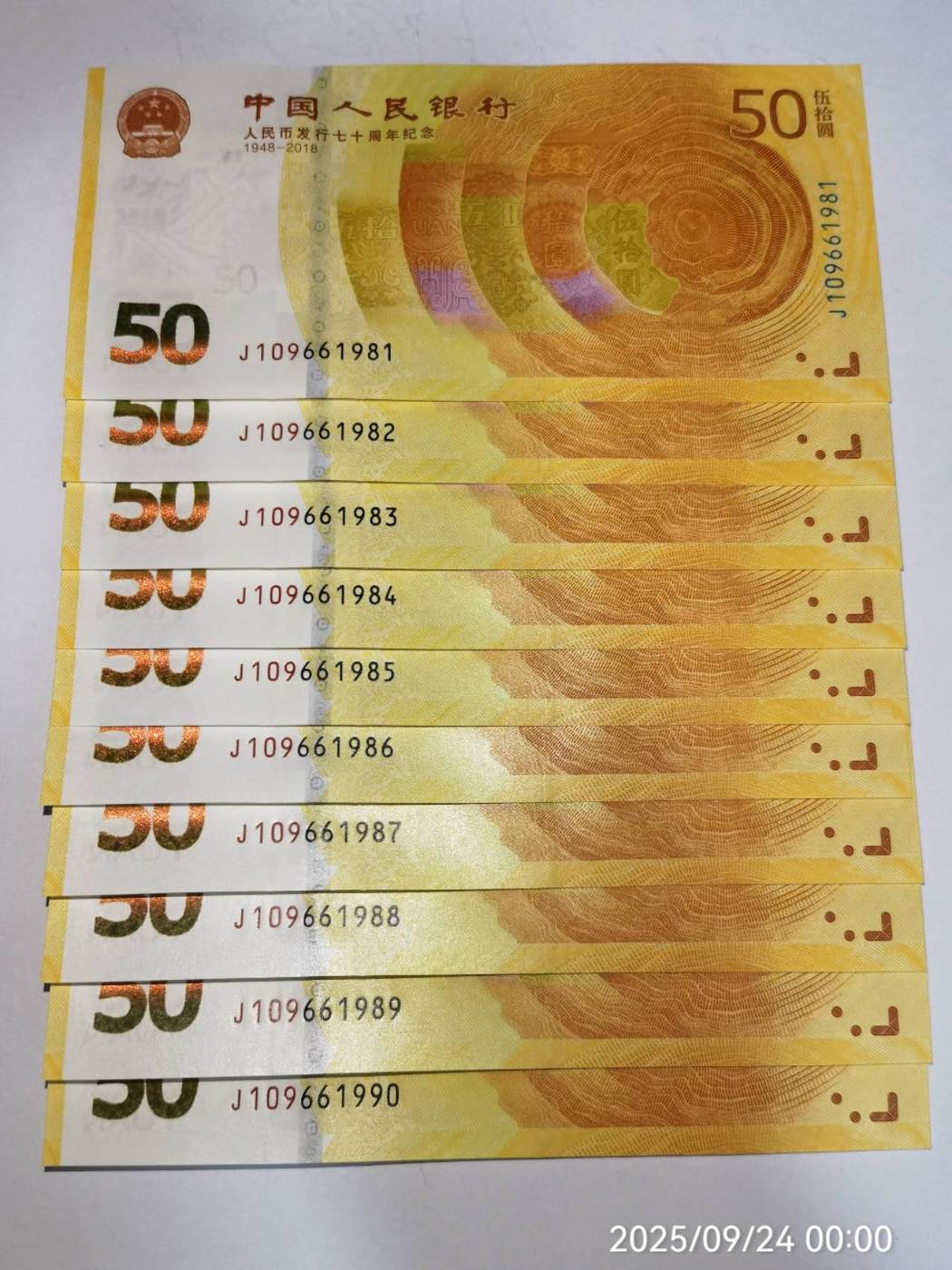 出70钞倒置标十2组(尾88),全品靓号,实物如图,明细如下: