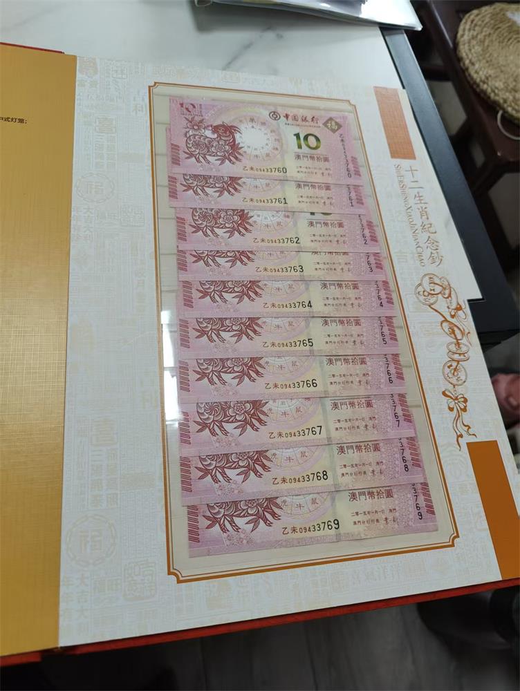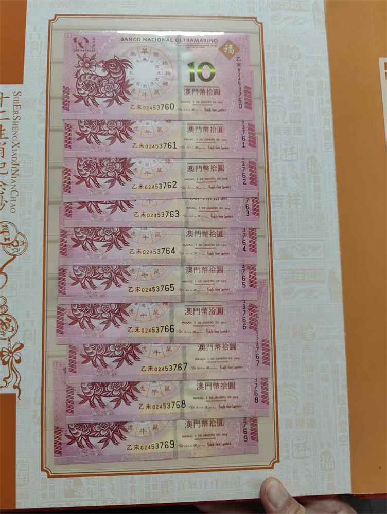 澳门羊标十,对钞,尾四同,18.5一对。185包邮。