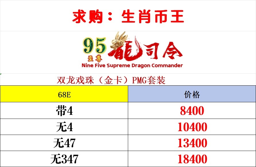 求购PMG68分金卡币证95至尊龙司令,价格如下,有货朋友请支持,另组建生肖币王微信群,由于群已经超过200人,请添加群主微信进群!