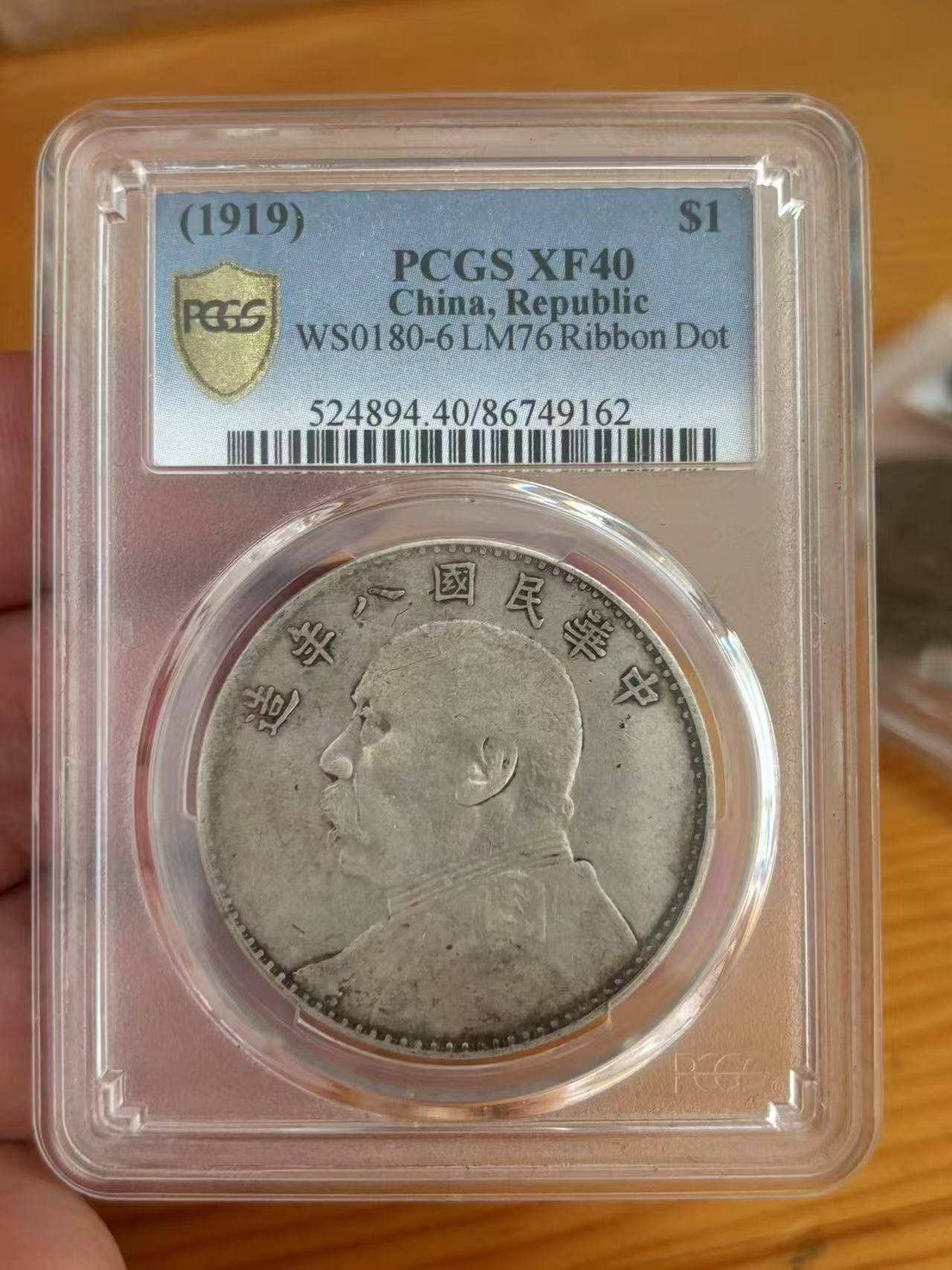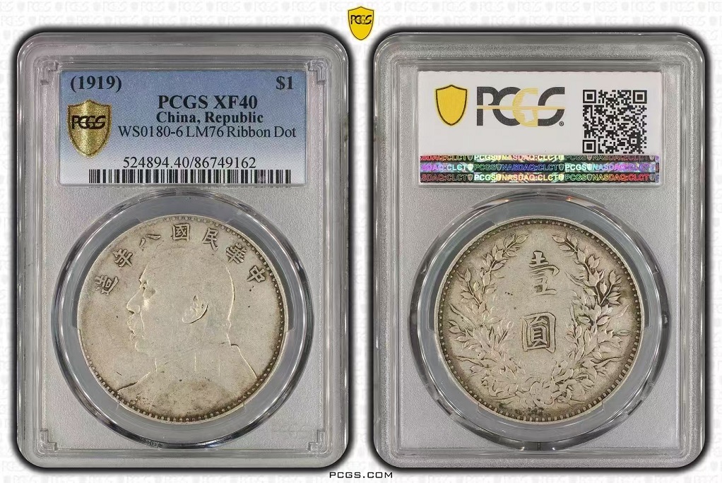 PCGS XF40,八年大头壹枚,左勾芒结上点,6900