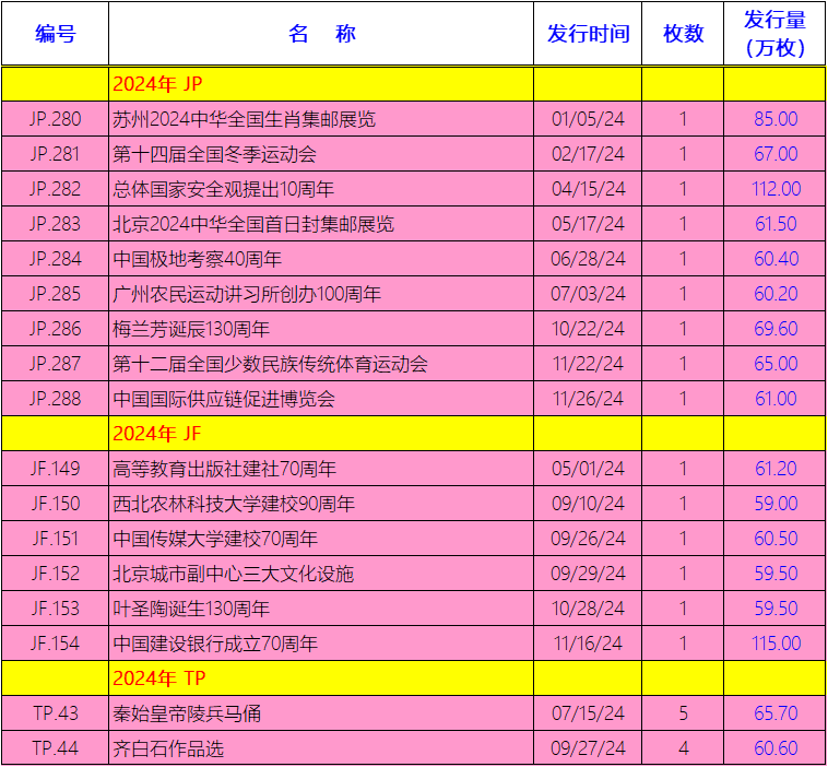 迎国庆.提价收购2024年JP,JF.TP封片17全。