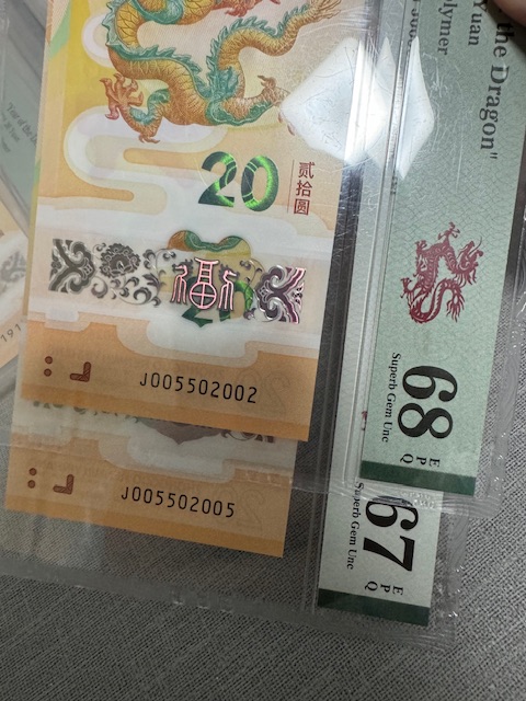 原汁原味无养护人三标十:其中2枚人三已经评级,分别是68、67分。其余7枚裸币全部人四。号码干净清爽,不可多得,价格13180元。只卖到下午2点。过期送拍。
