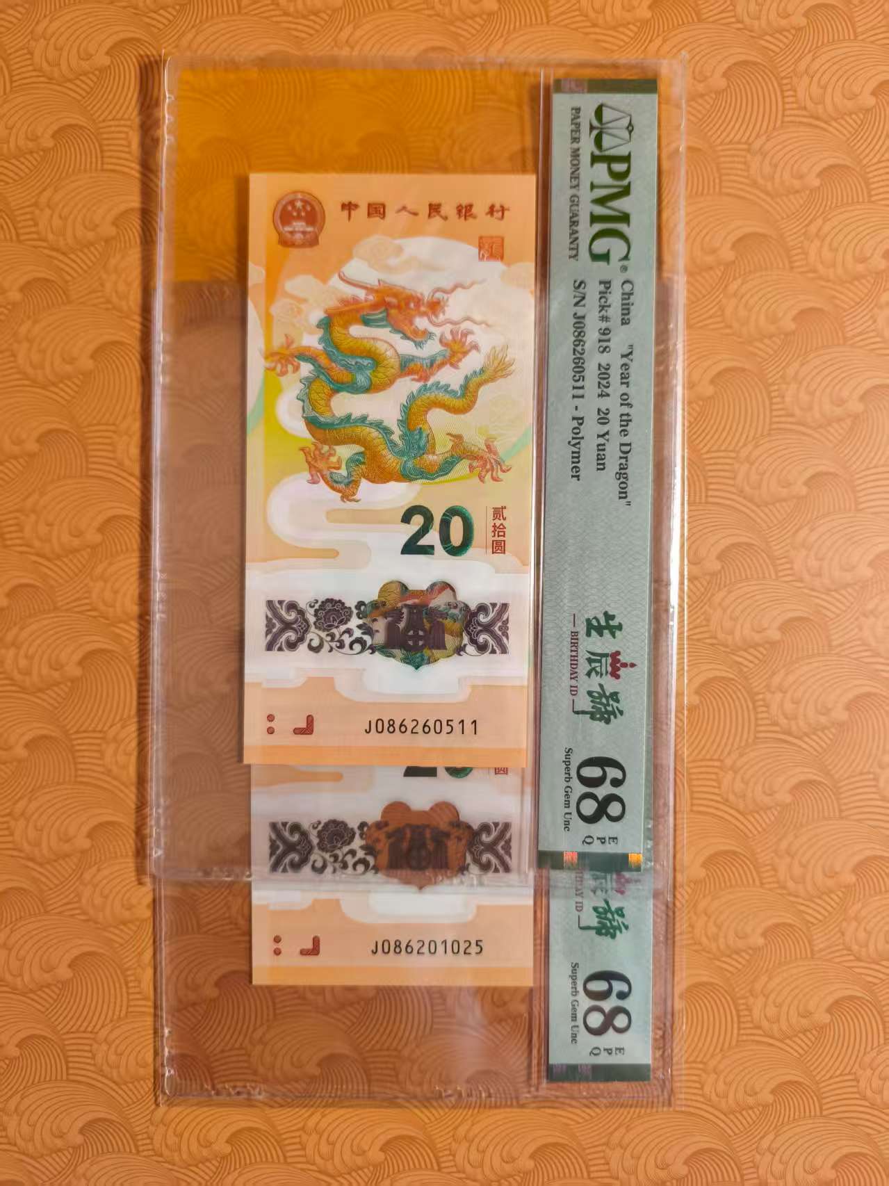 出小龙钞086头中国龙🐉国门号无347生日号pmg68分