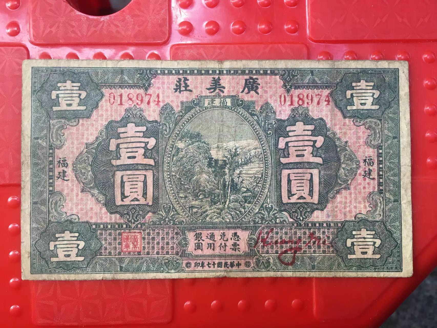 广美庄壹圆--福建莆田福清钱庄票