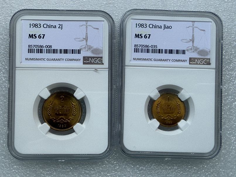 售NGC评级编码同一号段卷拆原光83年一角二角!品如图!售原光MS67一角二角共计5200元!多网同售!电联确认有效