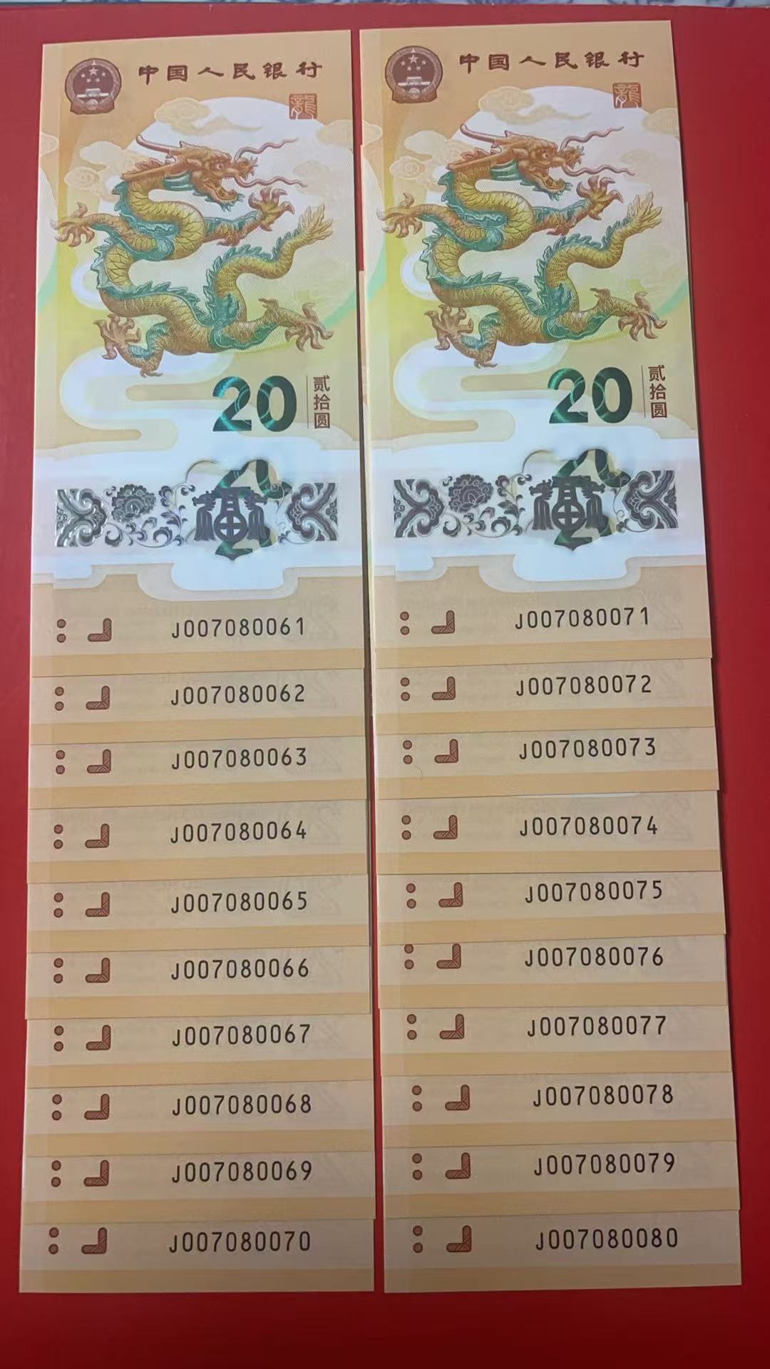 2024龙钞 007080071----007080080 金钩、金钩王、五龙珠、六龙珠