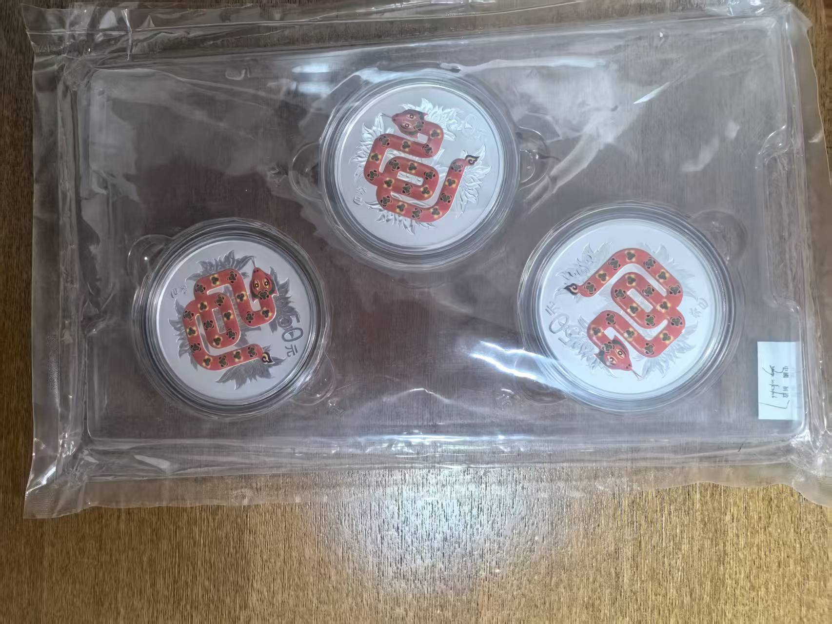 → 售,,5盎司彩银蛇3枚。原版封装。