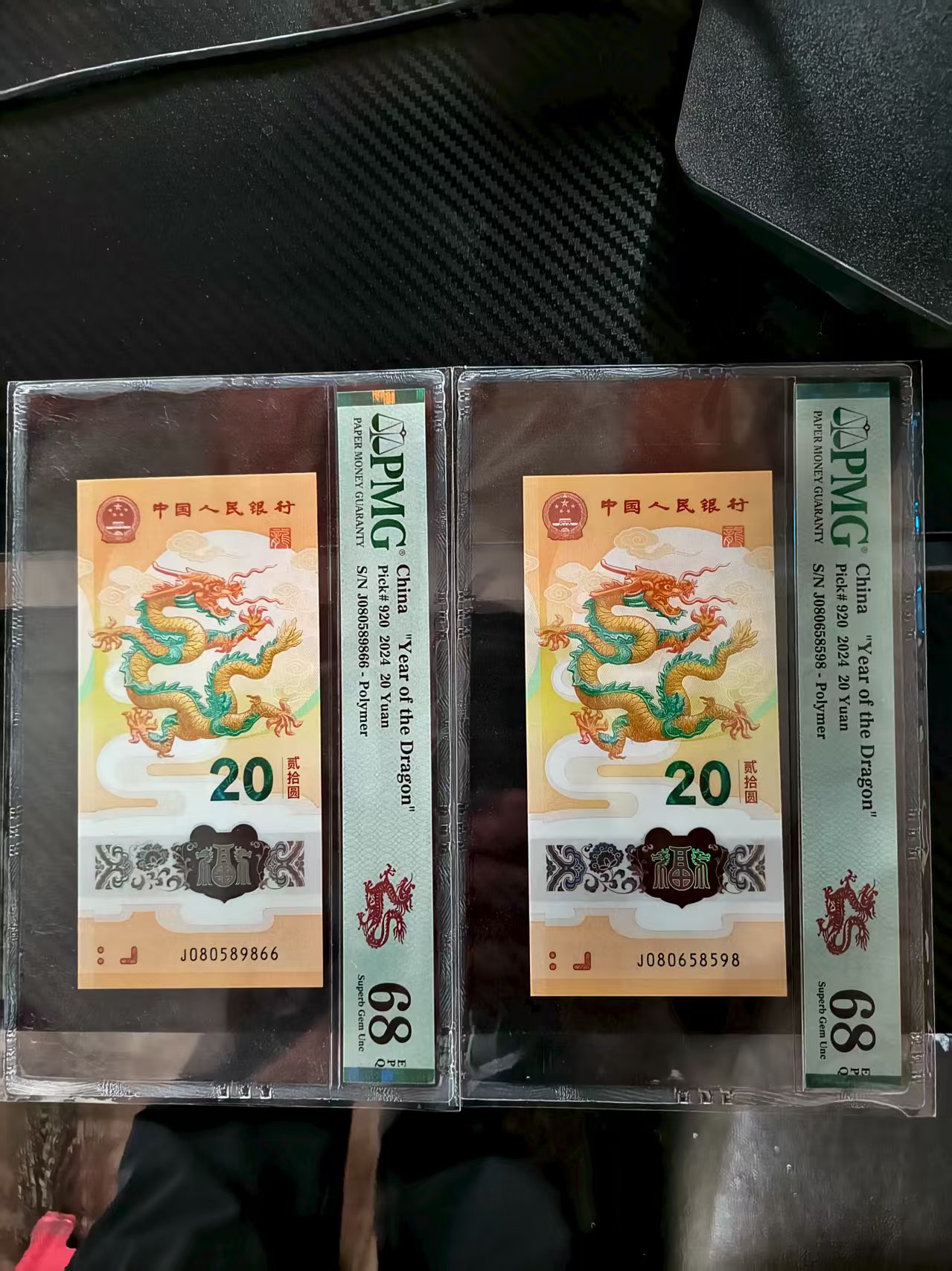 龙钞PMG金马王:J080658598尾8金马王,我发我就发,PMG68分,1850元。两张金马王通走3550三包顺丰到手。旧帖撤。