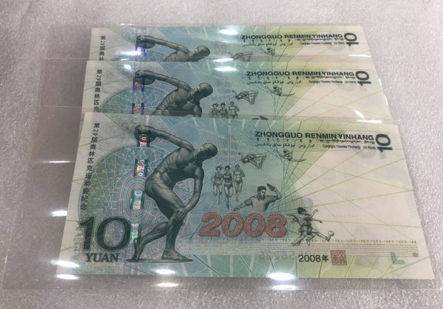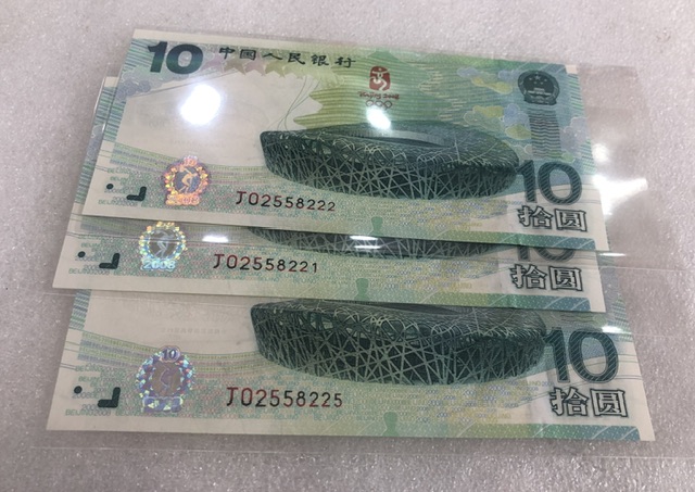 奥运钞无347 3张 2张2600一张 豹子号7300元灯下无斑