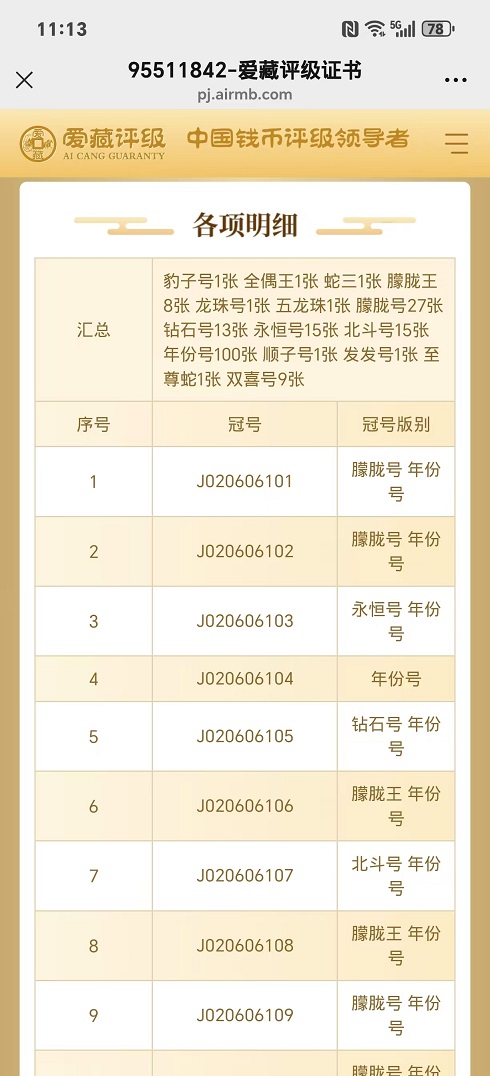 靓号多多 0126组合 朦胧王刀 爱藏评级67+