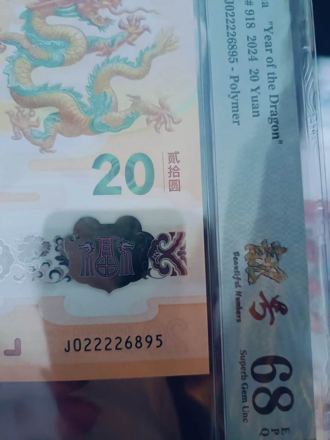 请朋友进来确认小龙钞95尾一张。