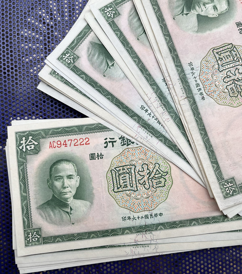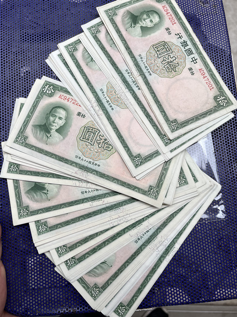 → 全新孙像中国银行拾圆 连号97张