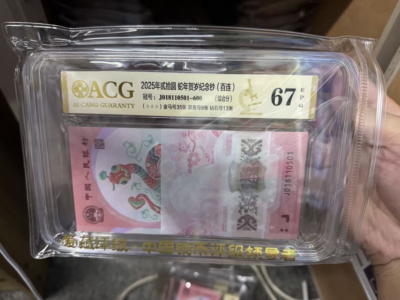 出售2025蛇年贺岁纪念钞,爱藏67分评级!