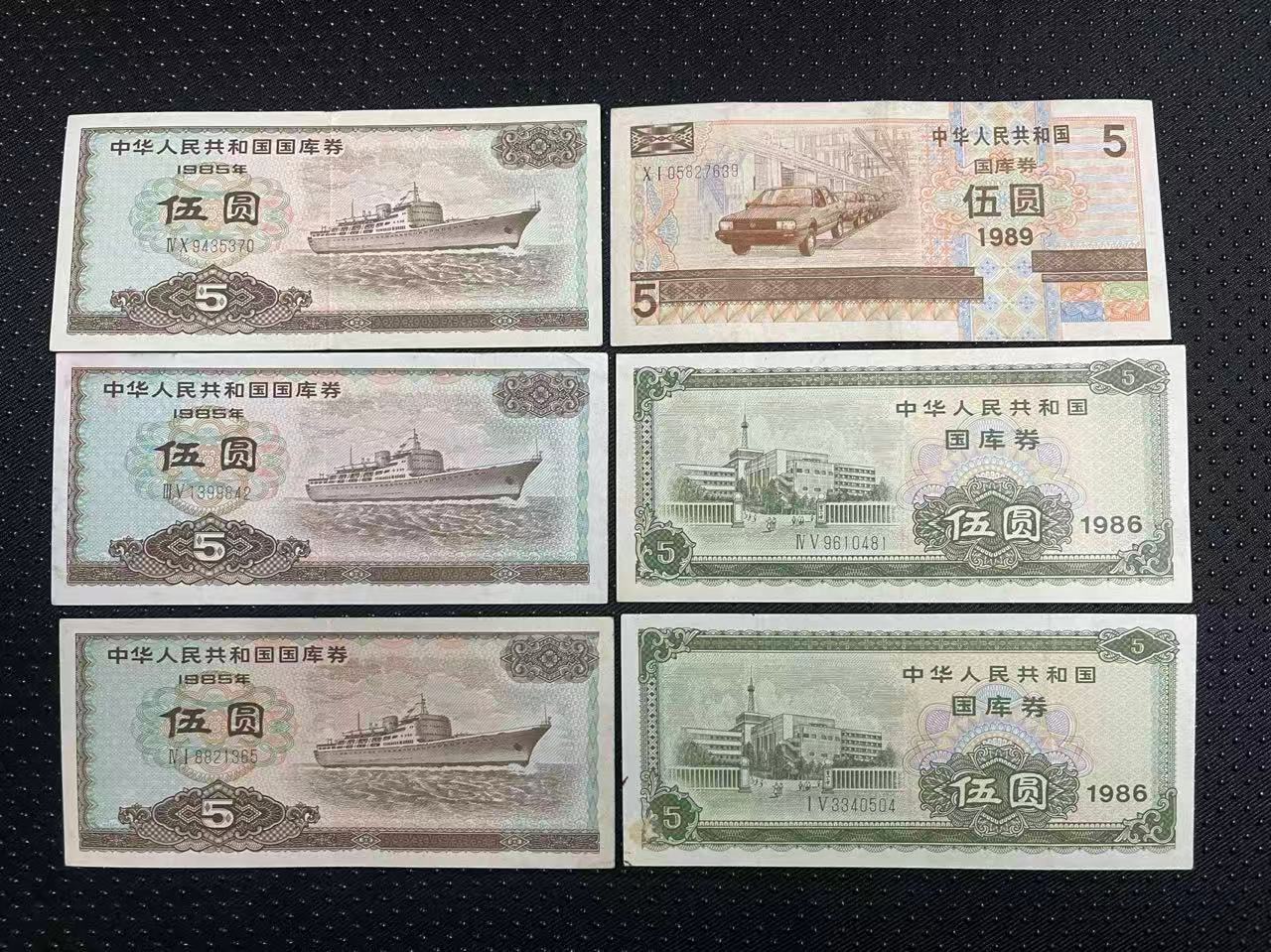 国库券伍元 流通好品。品如图,19张通走售:38元/张包邮。多网同售,确认前先电话联系。