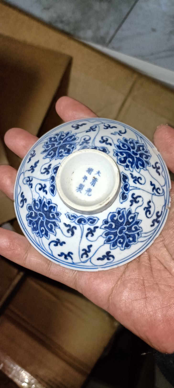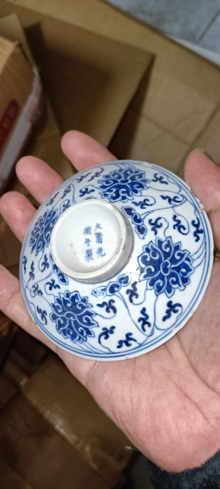 清代光绪缠枝花卉杯盖,底款大清光绪年制楷书款,边有磕冲如图,380元包邮。
