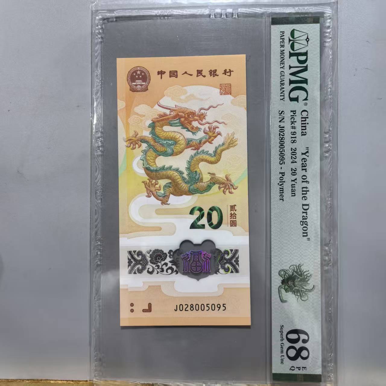 出一张龙钞PMG68分如意95 号码如图 号码非常干净 一眼清 售6300包顺丰空运