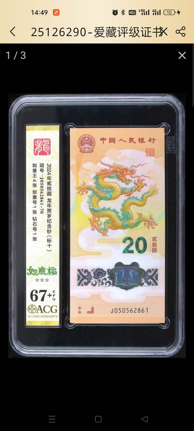 出龙钞无347如意标十,爱藏评级67+三星,5000包邮