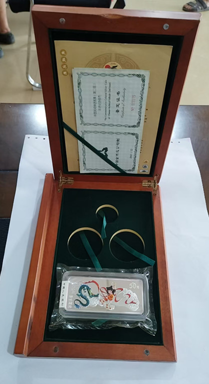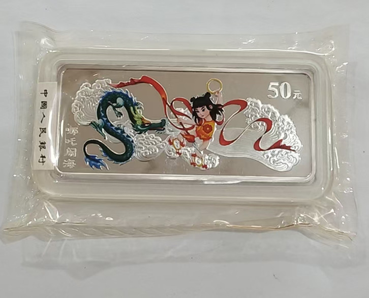 → 售一枚神话故事第二组哪吒闹海五盎司彩银币