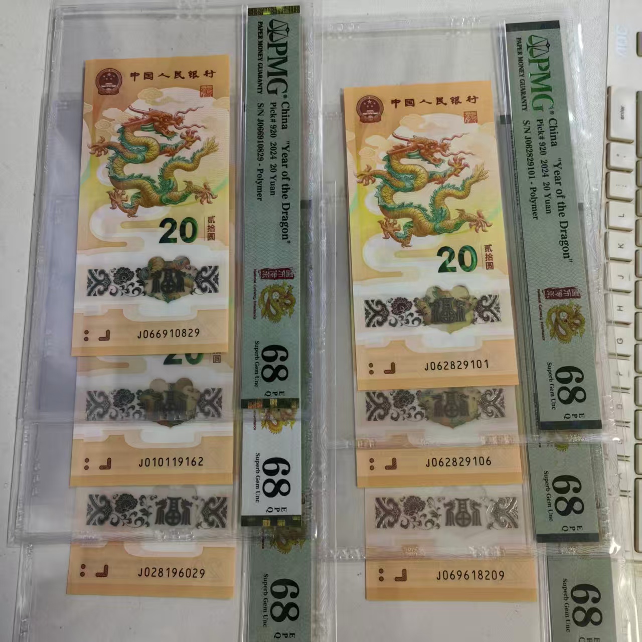 出售6张小龙钞PMG 68分朦胧号,如图。售820/张。一起出售4920包顺丰.