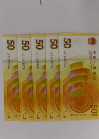 → 70钞 七十周年纪念钞 金钩 尾8 5张通出 750元 北方干货